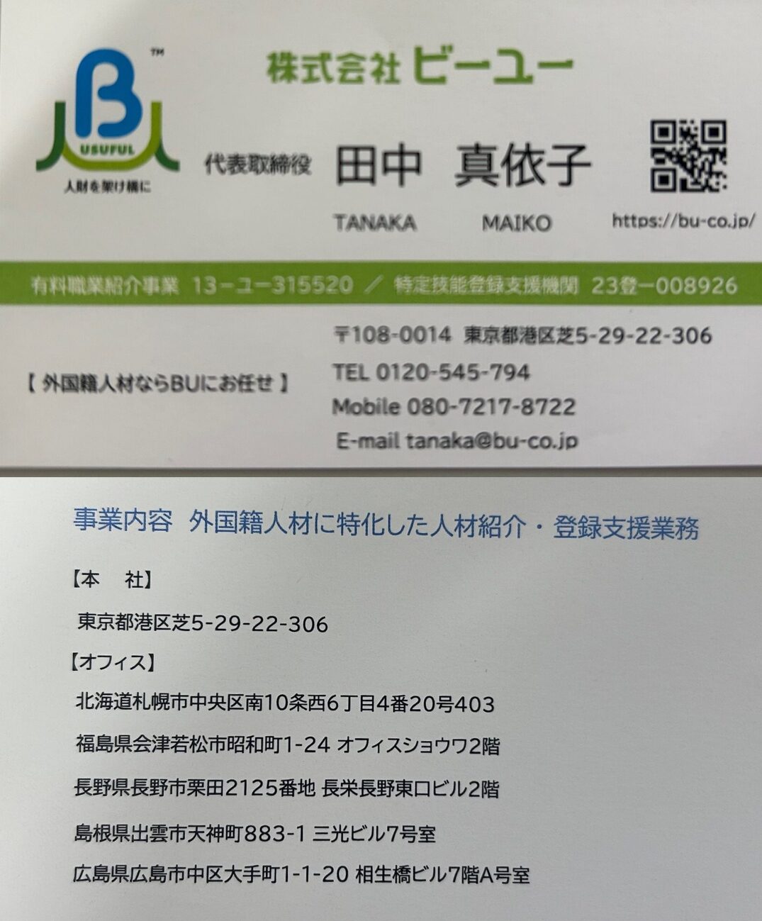 当社の社名「ビーユー(BU)」には、“Be useful(役立つ)”という理念が込められており、外国籍人材の雇用促進と定着支援を通して、地域経済の活性化と企業の持続的成長を支える「役に立つ存在」であり続けることを目指しています。