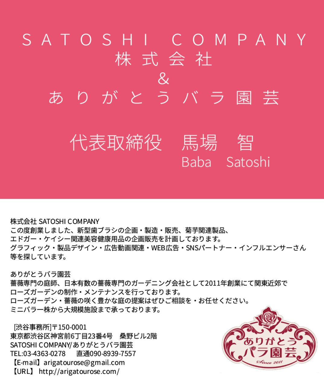 ありがとうバラ園芸/SATOSHICOMPANY 代表取締役