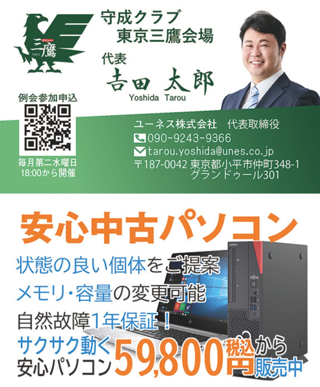 守成クラブの例会に毎月10会場ほど参加させていただき、例会内のご案内だけで年間300台以上のパソコンを販売させていただいています。