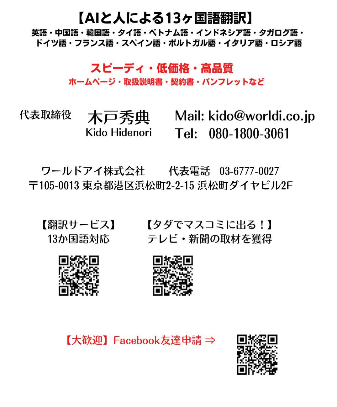 | 連絡先 | 08018003061 kido@worldi.co.jp |