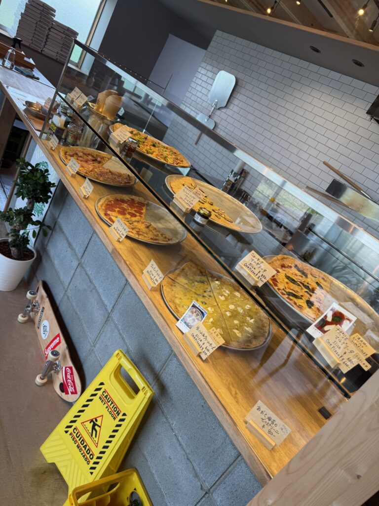 店舗では、本格的なNYスタイルピザを一枚ずつ丁寧に焼き上げ、自社の水耕栽培で育てた野菜を使用しています。